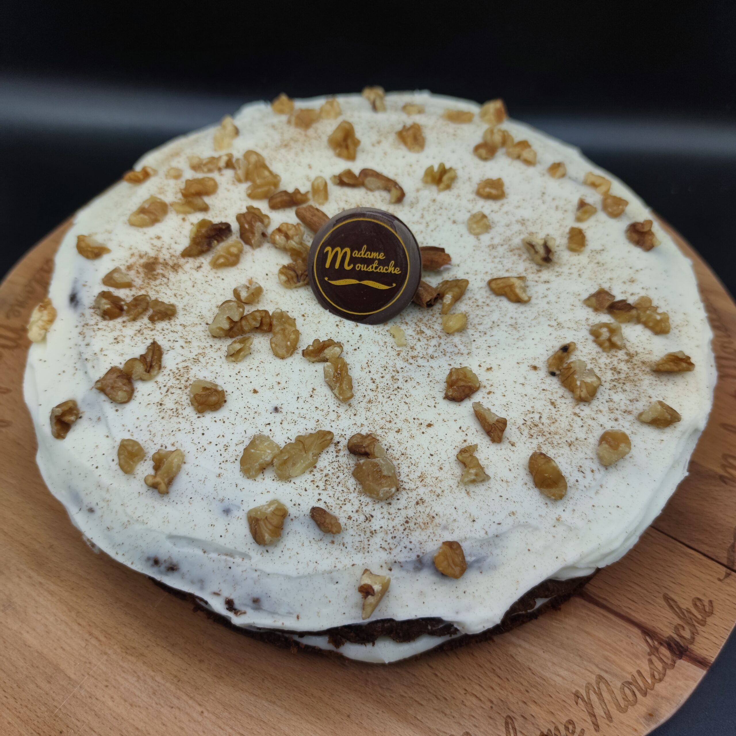 Un gâteau moelleux et épicé, riche en saveurs de noix et d’épices douces. Surmonté d’un glaçage onctueux au mascarpone, il est parsemé de noix croquantes qui apportent une belle texture et une touche de caractère. Un dessert à la fois gourmand et équilibré, parfait pour une pause douceur pleine de naturel. SANS GLUTEN